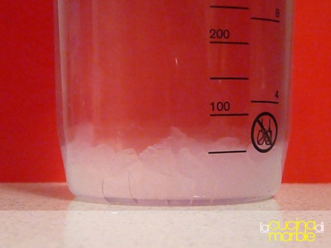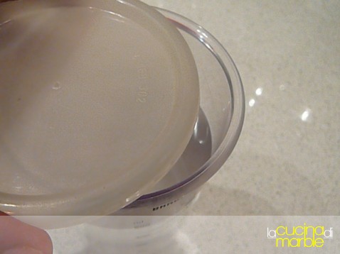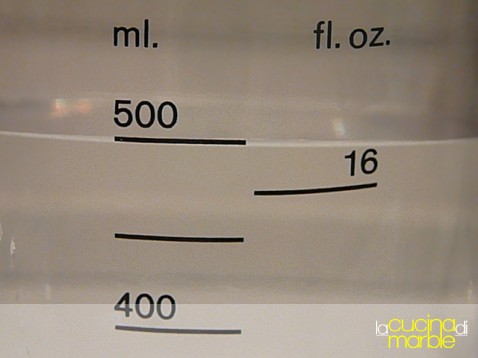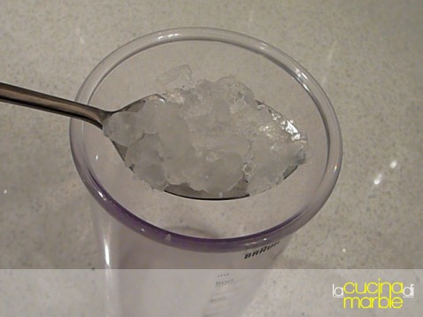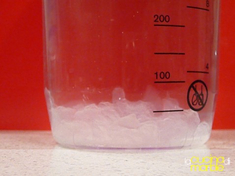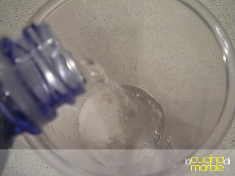 per queste dosi aggiungere 1/2 litro di acqua naturale a temperatura ambiente (evitare l'acqua del rubinetto che con cloro e disinfettanti ucciderebbe i granuli)