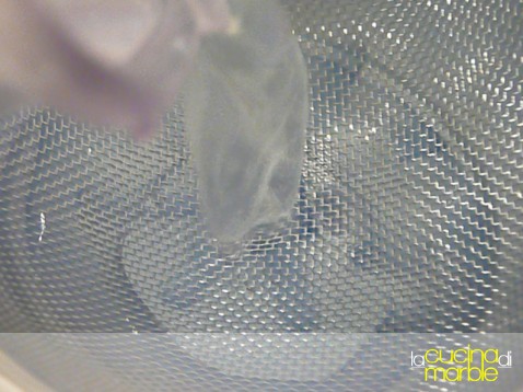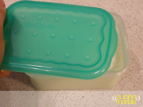 mettere i granuli ben sgocciolati in un contenitore da freezer