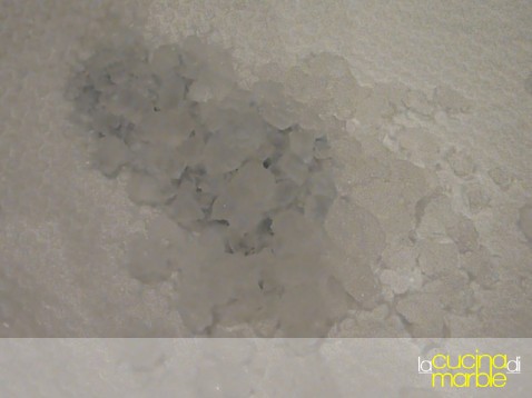 aspetto molto più consistente e gelatinoso dei granuli d'acqua, spesso sono concatenati lâ??uno allâ??altro e formano come una rete scomposta