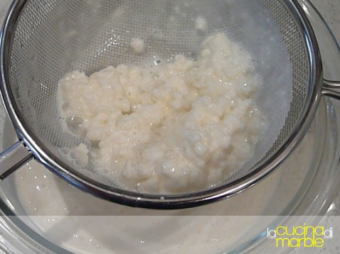 una volta ottenuto il kefir, procedere nuovamente al rinfresco dei granuli, scolando il tutto