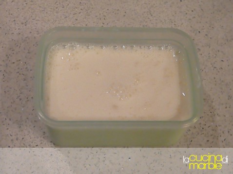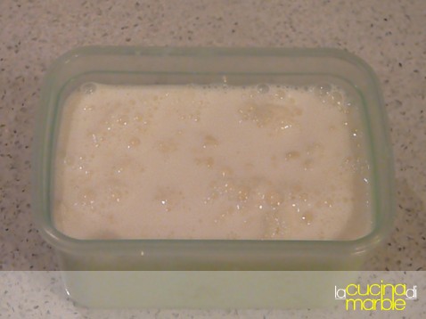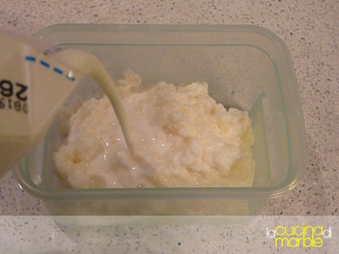 metterli in un contenitore pulito e aggiungere 1/2 litro di latte (a piacere intero, magro, semimagro, fresco, a lunga conservazione, di mucca, di pecora, di capra...)