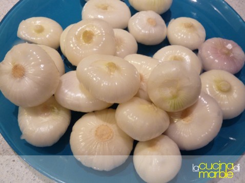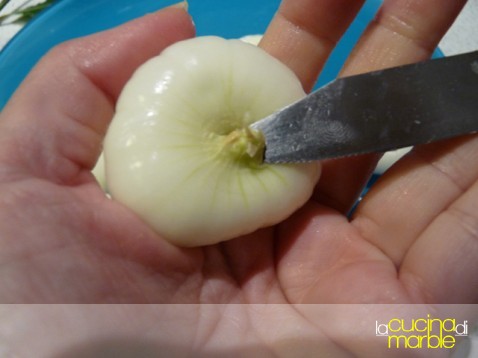 mondare, lavare ed asciugare le cipolline
