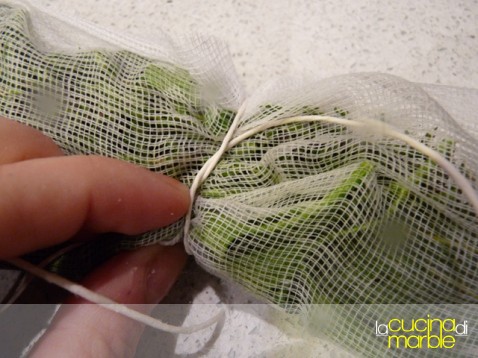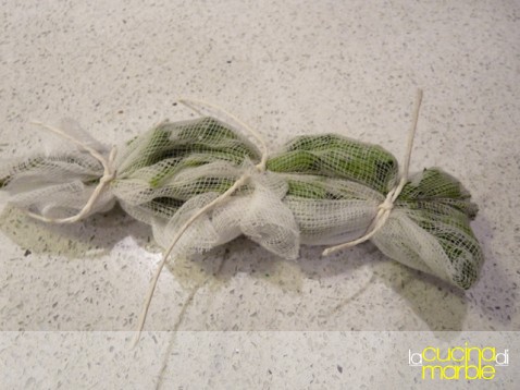 preparare il bouquet di erbe racchiudendole in una garza pulita