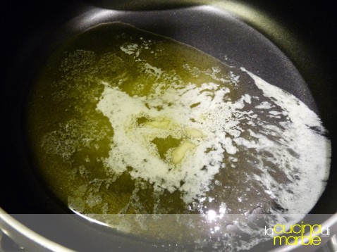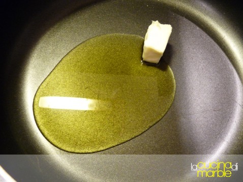 in una padella capiente far sciogliere il burro nell'olio e farlo poi riscaldare bene