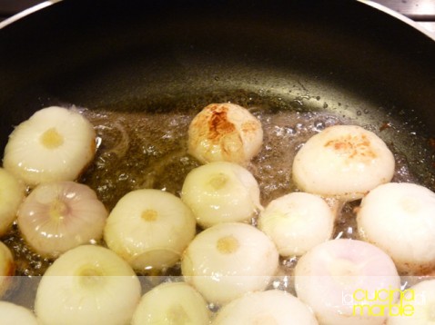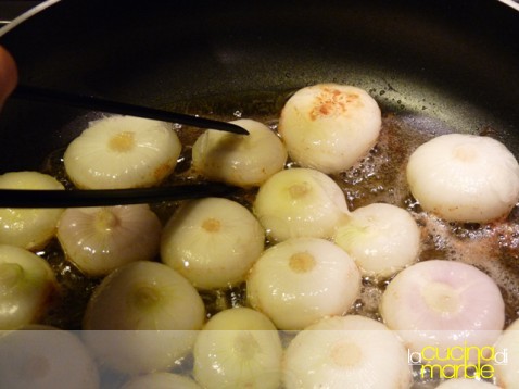 appena sarà ben caldo e inizierà a friggere aggiungere le cipolline in modo che siano tutte ben stese e non si sovrappongano