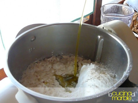 versare nel boccale tutti gli ingredienti, impastare 3' a velocità spiga