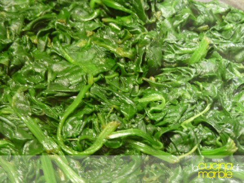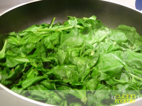 come prima cosa procedere alla cottura degli spinaci, basterà metterli in un tegame con la sola acqua residua del lavaggio