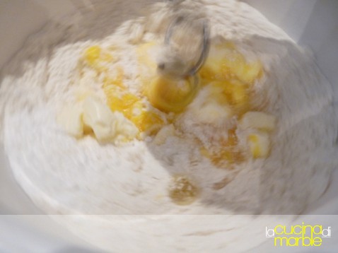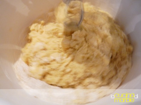 questa volta ho lavorato con l'impastatore, ma volendo si può lavorare a mano come indicato nella torta a pizzico