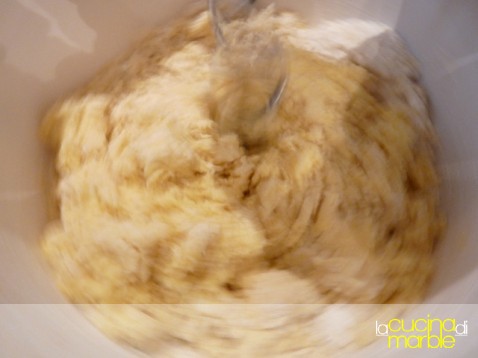 poi ho fatto lavorare l'impastatore a velocità medio bassa fino a che il tutto non è risultato ben amalgamato