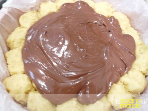versare poi sopra la nutella in modo da lasciare scoperte le parti esterne