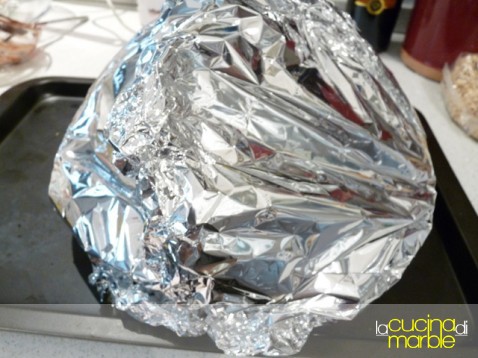 ora, ho fatto una variante rispetto alla torta a pizzico che cuoce scoperta, ho preferito richiudere la teglia nella stagnola in modo che la torta cuocesse ma che non bruciasse la nutella