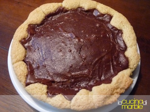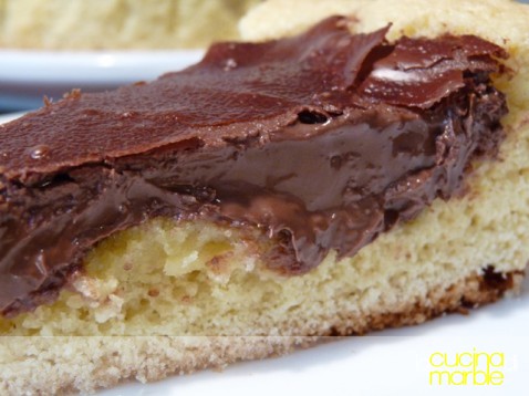 eccola pronta, la base risulta come una frolla ma molto più leggera, consistente come un dolce, la nutella resta cremosa e avvolgente e ci sta bene rubare una frase a Leopardi: naufragar m'è dolce in questo mare...