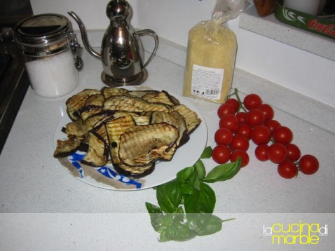 fare un primo strato di cous cous, un secondo di pomodorini, poi foglie di basilico e un giro d'olio, finire con un altro strato di cous cous e richiudere con altre melanzane e ripiegando sopra le altre del laterale