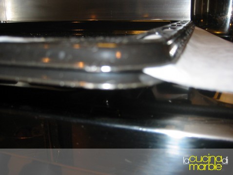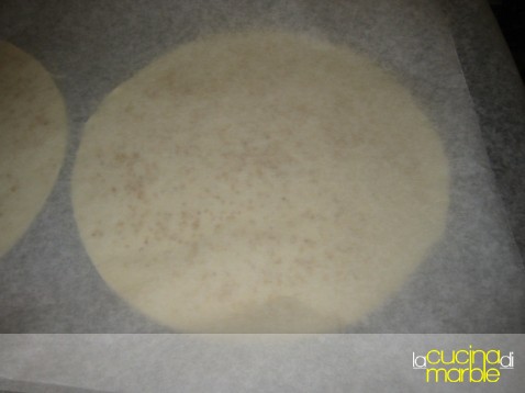 ricoprire con altra cartaforno e sovrappore un'altra teglia in modo che in cottura non si alzi troppo la sfoglia