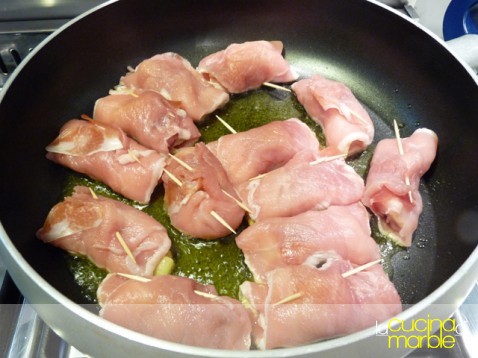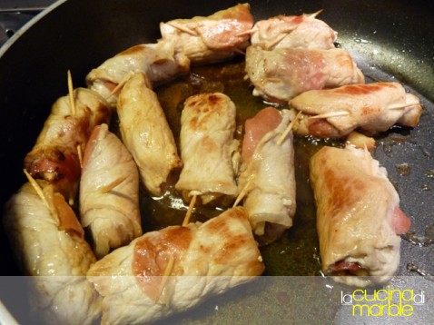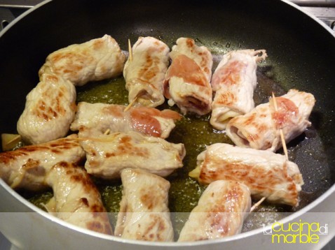far scaldare in un ampio tegame dell'olio, aggiungere gli involtini e farli rosolare
