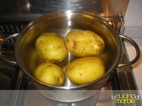 lessare le patate e passarle allo schiacciapatate