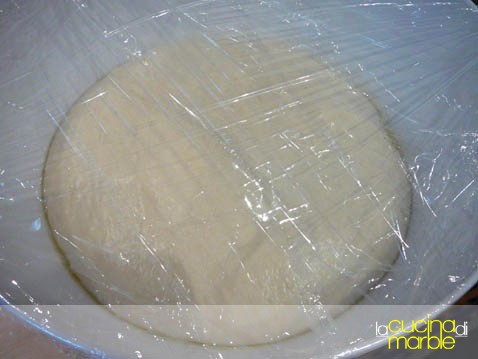 mettere questo impasto in un contenitore unto d'olio, ricoprire con della pellicola e lasciare lievitare un paio d'ore