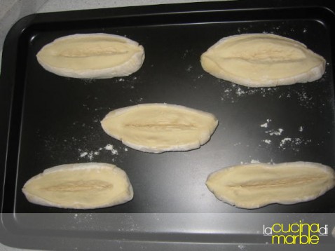 adagiare delicatamente sulla piastra di cottura con la parte tagliata verso l'alto e poi incidere questa parte praticamente per tutta la lunghezza partendo da un centimetro dai bordi e incidendo per non più di metà pasta