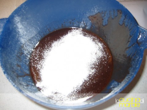 da questo composto togliere circa 1,5 dl di liquido (circa 150 gr) che servirà poi per glassare il dolce