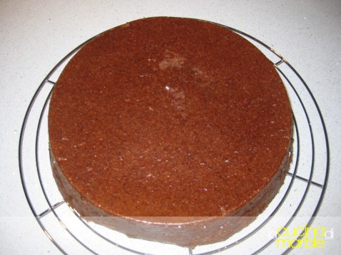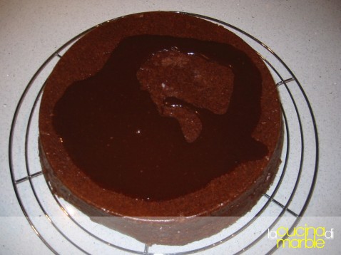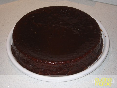 versare sopra la parte di composto lasciata da parte e ricoprire bene tutto il dolce con questa specie di glassatura