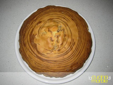 al centro di questa cucchiaiata mettere un altro cucchiaio di impasto ma dell'altro colore, proseguire così -una cucchiaiata sopra all'altra- fino alla fine degli ingredienti