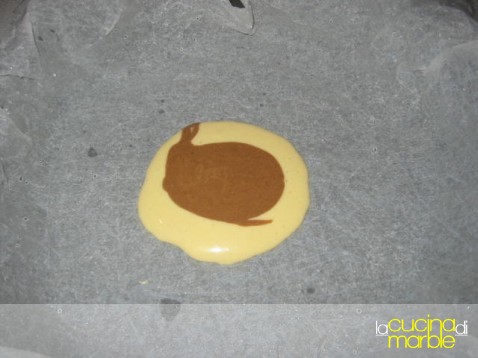 dividere in due parti l’impasto, ad una metà aggiungere il cacao amaro (se occorre diluire un po' con del latte)