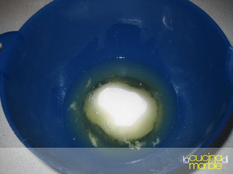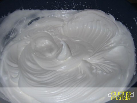 montare a meringa le 6 chiare con lo 150 gr di zucchero