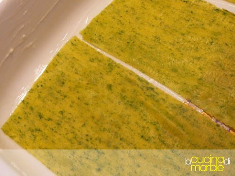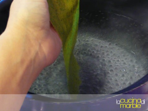lessare brevemente (dipende dallo spessore, massimo 3 minutini, non devono arrivare assolutamente a cottura ma perdere solo il crudo) le lasagne poche per volta in acqua bollente salata