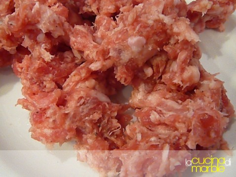 spellare la salsiccia e sbriciolarla grossolanamente