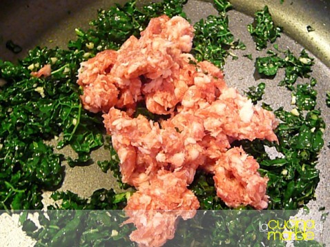 aggiungere la salsiccia, farla rosolare e portare a cottura eventualmente aggiungendo anche del liquido caldo
