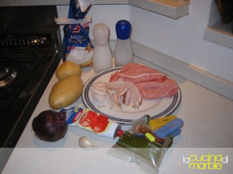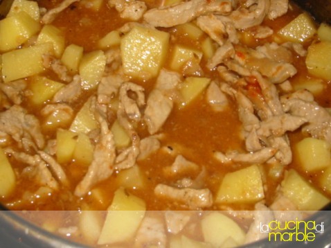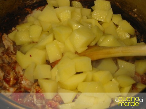 infine le patate a dadi, aggiungiamo acqua per portare a cottura