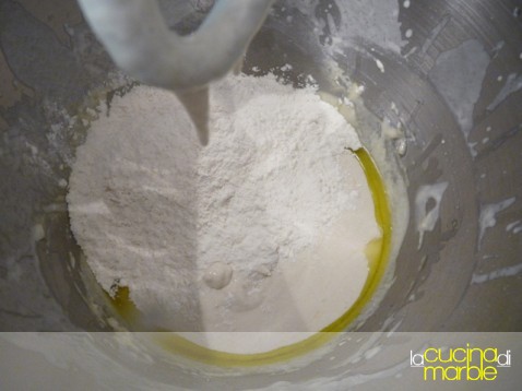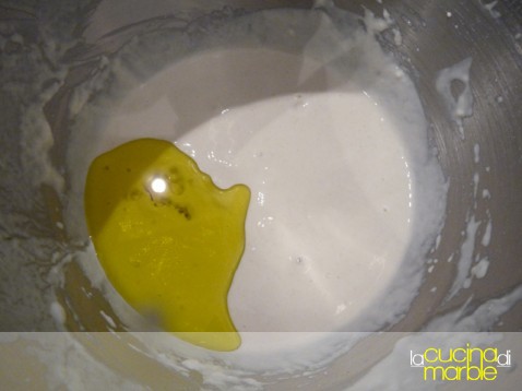 infine si aggiungono i 30 gr di olio e gli altri 200 gr di farina