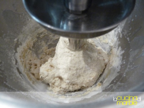 a questo punto si continua la lavorazione per 10'-15' fino a quando l'impasto non sarà liscio e incordato