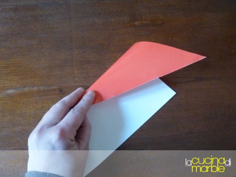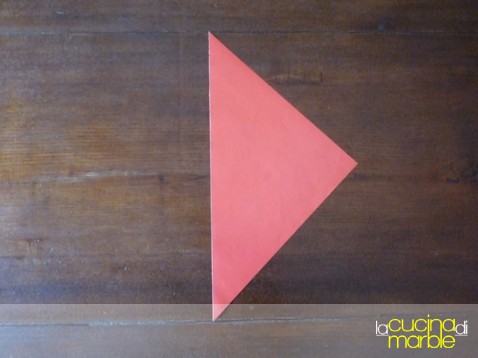 partendo da un foglio triangolare, ottenuto da mezzo quadrato, quindi con un angolo a 90° e gli altri due a 45°