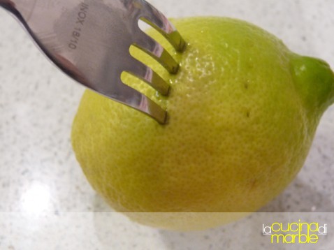 bucherellare il limone con i rebbi di una forchetta