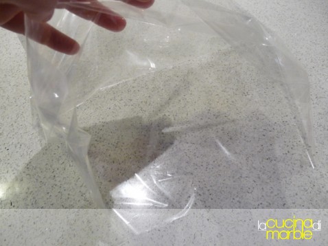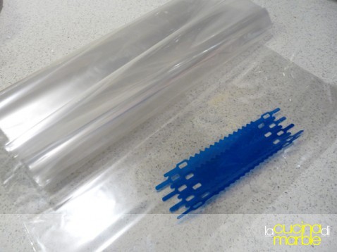 così mi sono messa alla ricerca dei sacchetti neutri per rifarlo a casa, ho trovato (e la trovo una soluzione ottima) un rotolo di questa magica plastichina che serve per cuocere le cose in forno