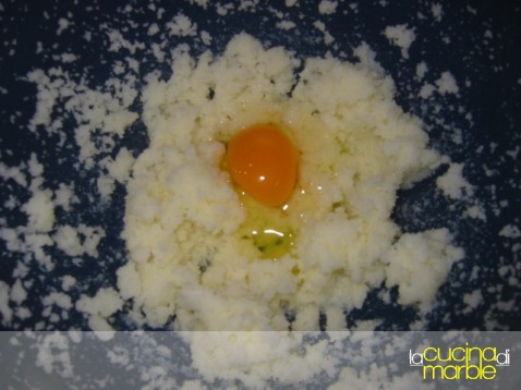 lavorare 300 gr di zucchero con il burro ammorbidito, aggiungere una ad una le uova continuando a montare