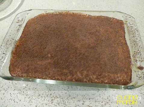 mettere sul fondo della crema di mascarpone, sopra dei biscotti inzuppati, sopra la granella di cioccolata
