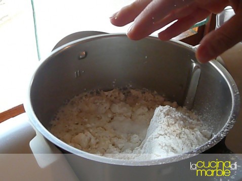 versare nel boccale tutti gli ingredienti, impastare 3' a velocità spiga