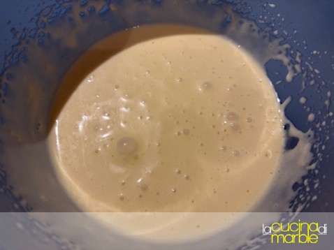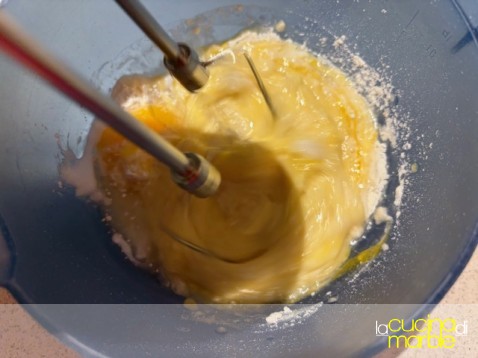 questa volta ho montato con le fruste elettriche, ma va benissimo anche amalgamare con una frusta a mano