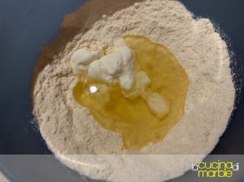 ho aggiunto poi gli ingredienti umidi: yogurt, olio, uovo