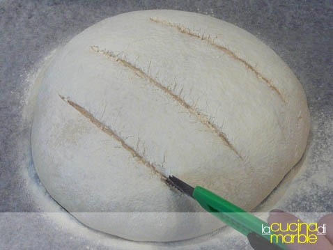 passata questa ultima lievitazione, spolverizzare di nuovo di farina e praticare dei tagli a piacere