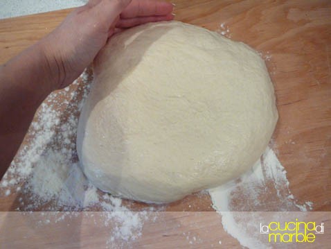 sgonfiare delicatamente e passarlo sulla spianatoia per dare forma infarinandolo bene