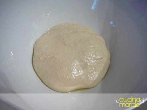 mettere questo impasto in un contenitore unto d'olio, ricoprire con della pellicola e lasciare lievitare un paio d'ore