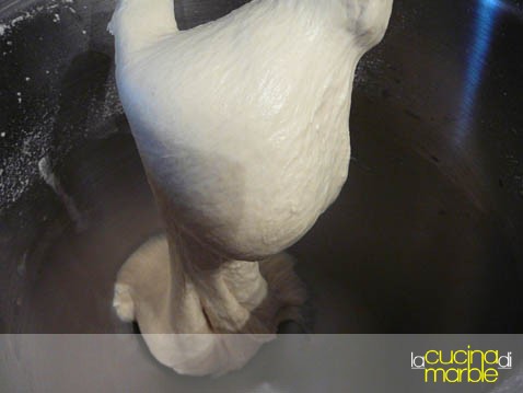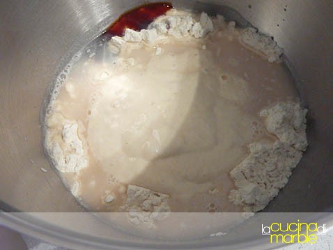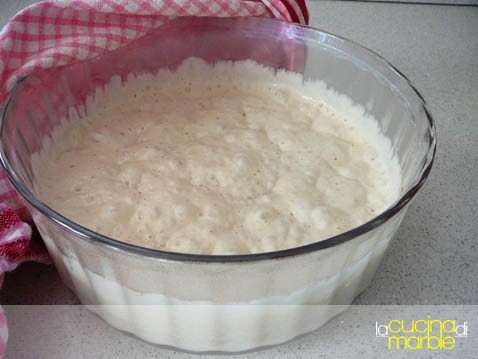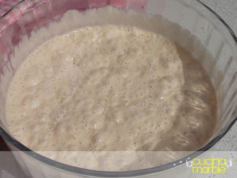 viene fatto un pre impasto che dovrà riposare 48 ore prima di procedere all'impasto finale, in pratica viene fatta una biga lunga, molto simile a quella del pane pugliese