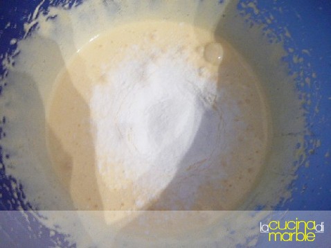 unire i tuorli allo zucchero e montare fino ad ottenere un bel composto bianco e spumoso al quale andrà aggiunta la fecola