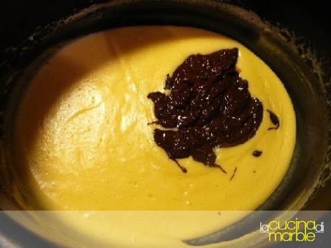 dopo averlo fatto cuocere qualche minuto aggiungere la cioccolata tritata o la cioccolata precedentemente sciolta e la amalgamare bene alla crema