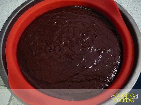 versare questa crema al cioccolato profumata all'arancia sulla base del dolce