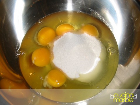 mettere le uova e lo zucchero in un contenitore adatto alla cottura a bagnomaria