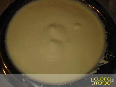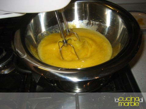 iniziare a montare il tutto con le fruste fino a quando il composto non sarà ben gonfio e chiaro, dovrà montare tantissimo, anche 5 volte il volume iniziale